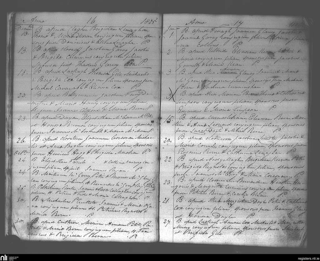 Aughrim; County of Roscommon; Diocese of Elphin. Baptisms, Dec. 1825 to Jan. 1826