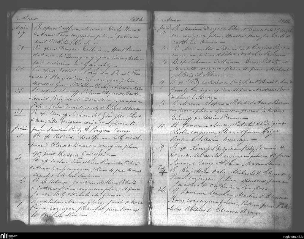 Aughrim; County of Roscommon; Diocese of Elphin. Baptisms, May 1826 to June 1826