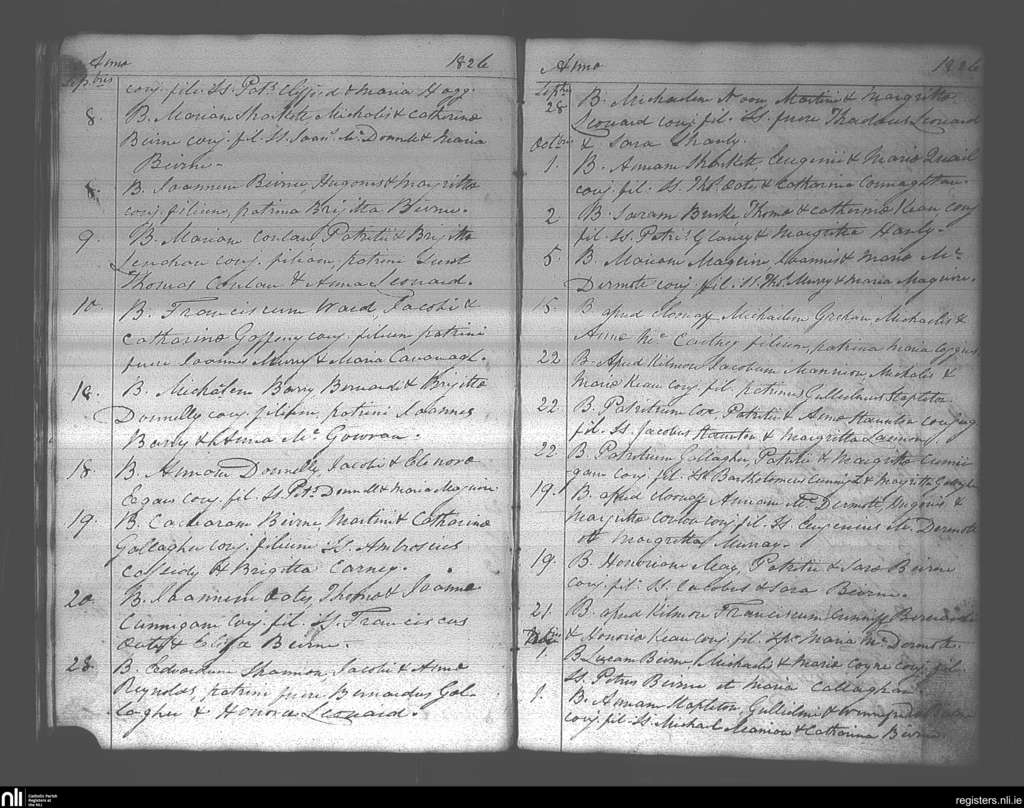 Aughrim; County of Roscommon; Diocese of Elphin. Baptisms, Sep. 1826 to Nov. 1826