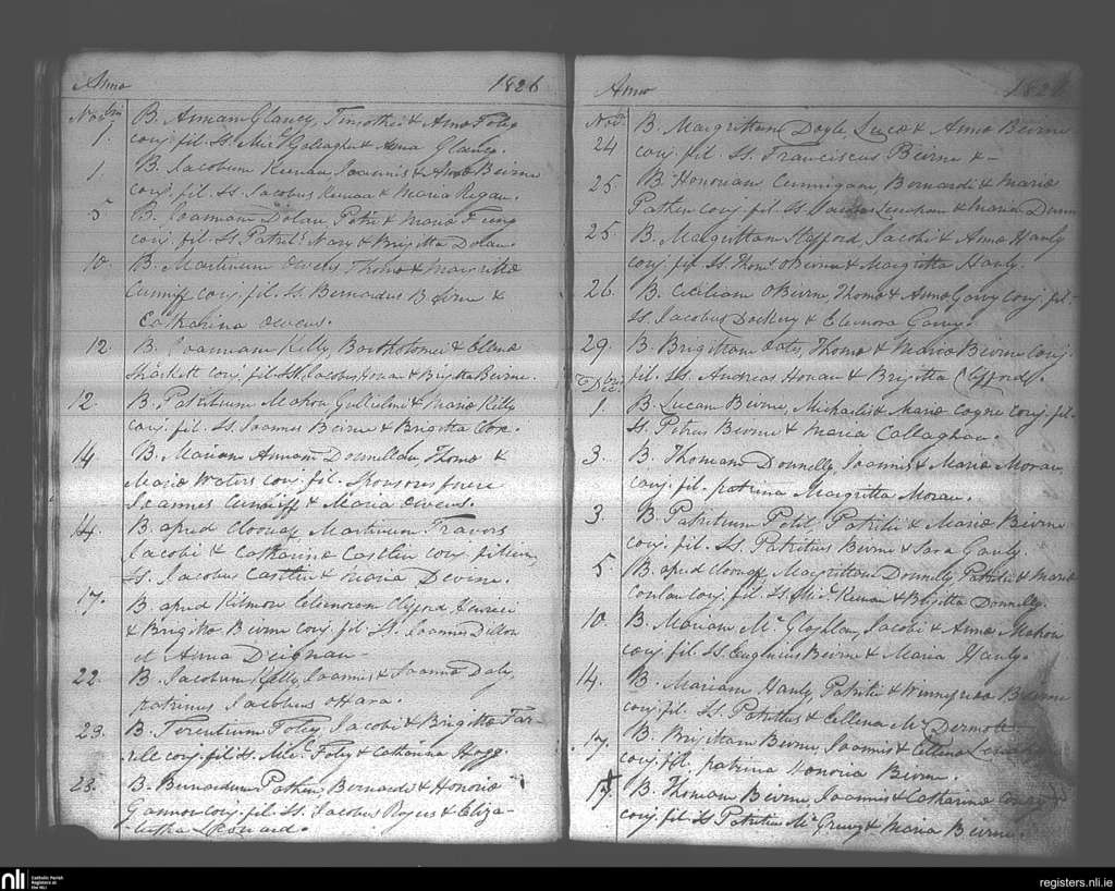 Aughrim; County of Roscommon; Diocese of Elphin. Baptisms, Nov. 1826 to Dec. 1826