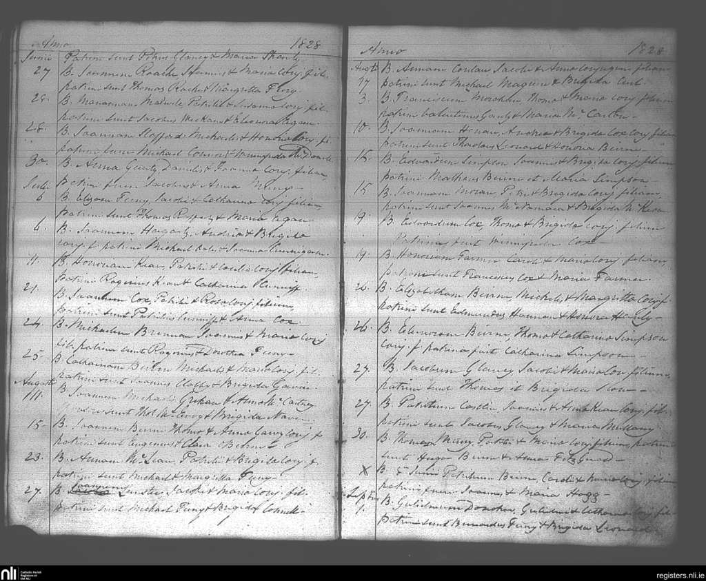 Aughrim; County of Roscommon; Diocese of Elphin. Baptisms, June 1828 to Sep. 1828