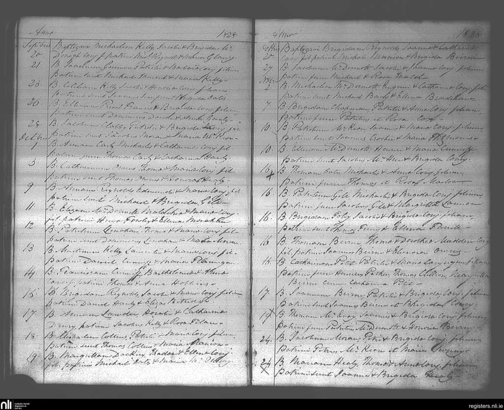 Aughrim; County of Roscommon; Diocese of Elphin. Baptisms, Sep. 1828 to Nov. 1828