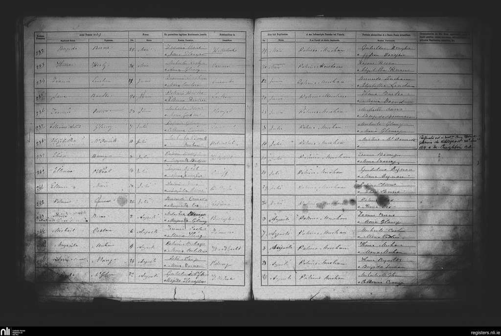 Aughrim; County of Roscommon; Diocese of Elphin. Baptisms, May 1869 to Aug. 1869