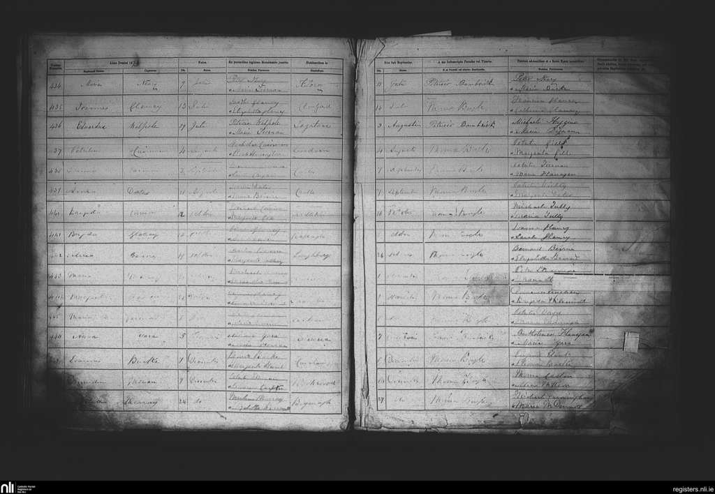 Aughrim; County of Roscommon; Diocese of Elphin. Baptisms, July 1873 to Dec. 1873