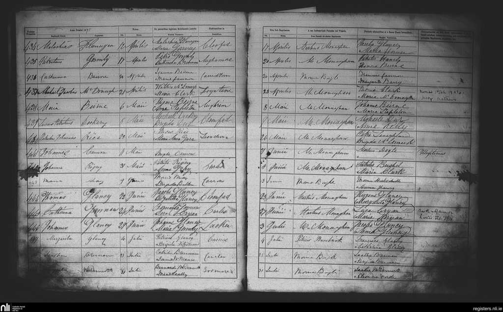 Aughrim; County of Roscommon; Diocese of Elphin. Baptisms, Apr. 1875 to July 1875