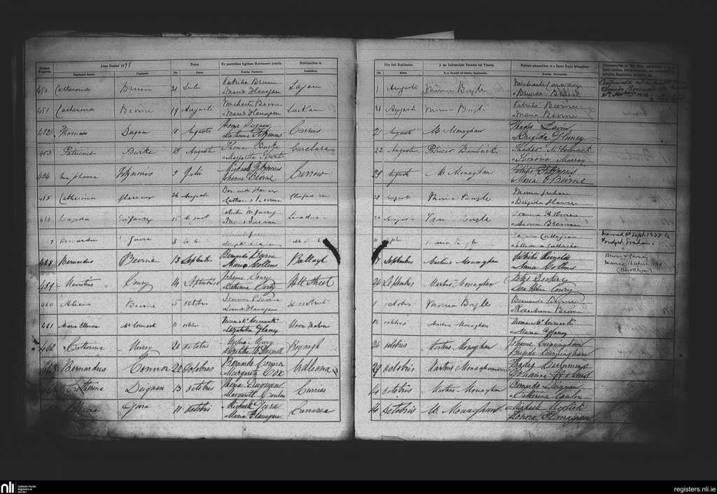 Aughrim; County of Roscommon; Diocese of Elphin. Baptisms, Apr. 1875 to Oct. 1875