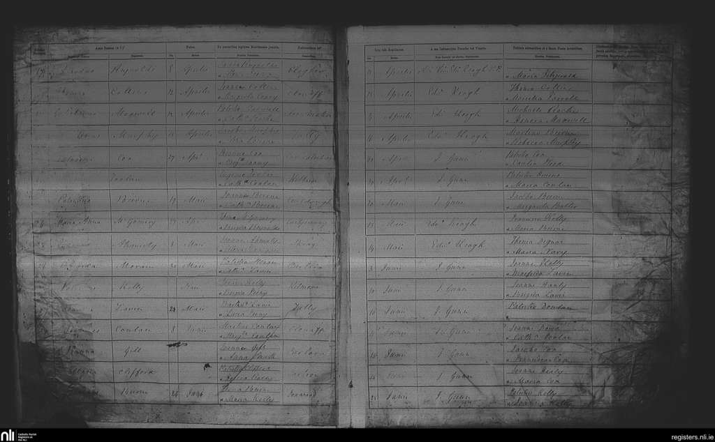 Aughrim; County of Roscommon; Diocese of Elphin. Baptisms, Apr. 1865 to June 1865