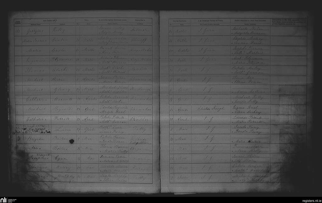 Aughrim; County of Roscommon; Diocese of Elphin. Baptisms, Mar. 1867 to June 1867