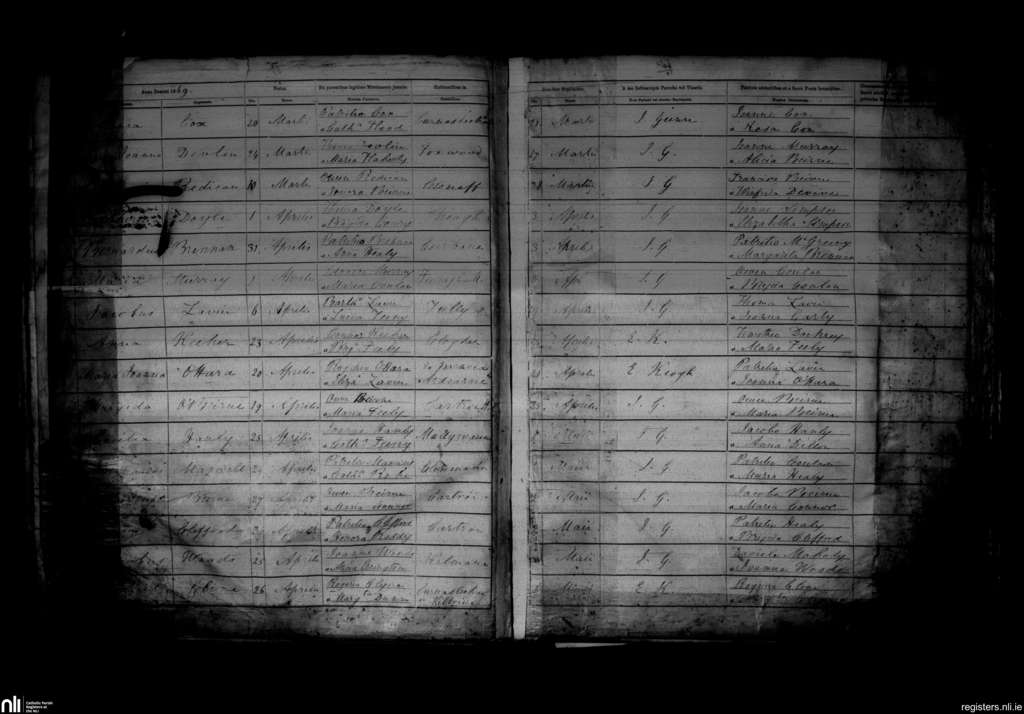 Aughrim; County of Roscommon; Diocese of Elphin. Baptisms, Mar. 1869 to May 1869