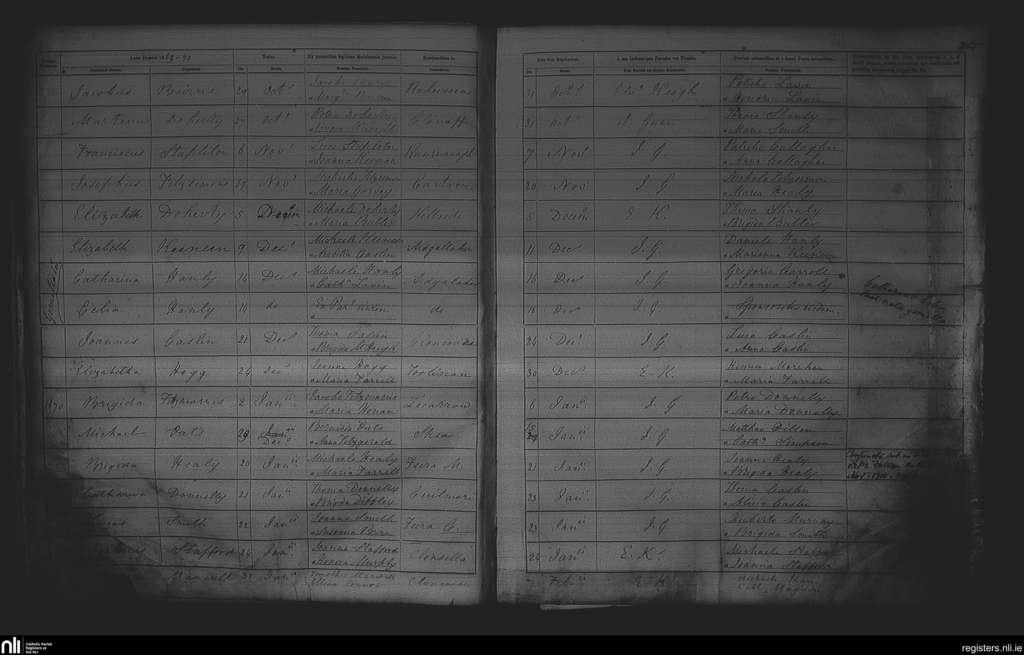 Aughrim; County of Roscommon; Diocese of Elphin. Baptisms, Oct. 1869 to Feb. 1870