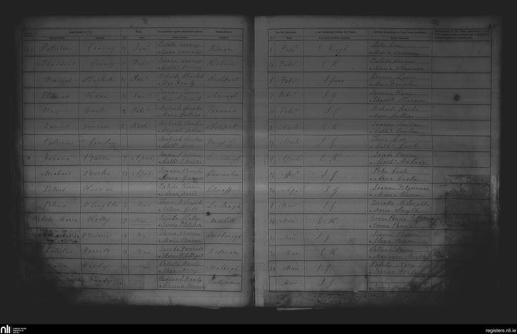 Aughrim; County of Roscommon; Diocese of Elphin. Baptisms, Feb. 1870 to May 1870