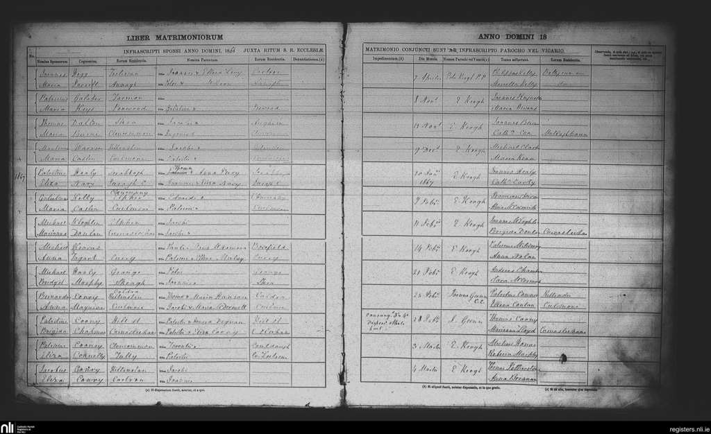 Aughrim; County of Roscommon; Diocese of Elphin. Marriages, Apr. 1866 to Mar. 1867