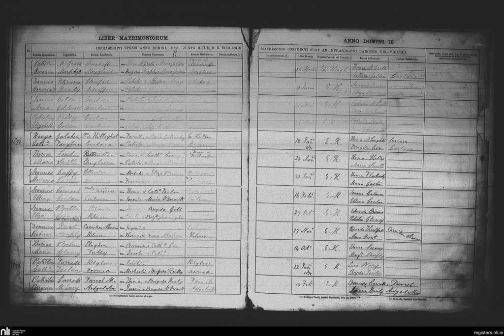 Aughrim; County of Roscommon; Diocese of Elphin. Marriages, Apr. 1870 to Feb. 1872