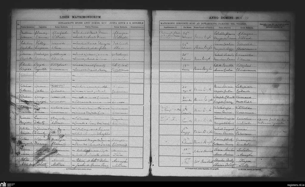Aughrim; County of Roscommon; Diocese of Elphin. Marriages, Feb. 1876 to May 1877