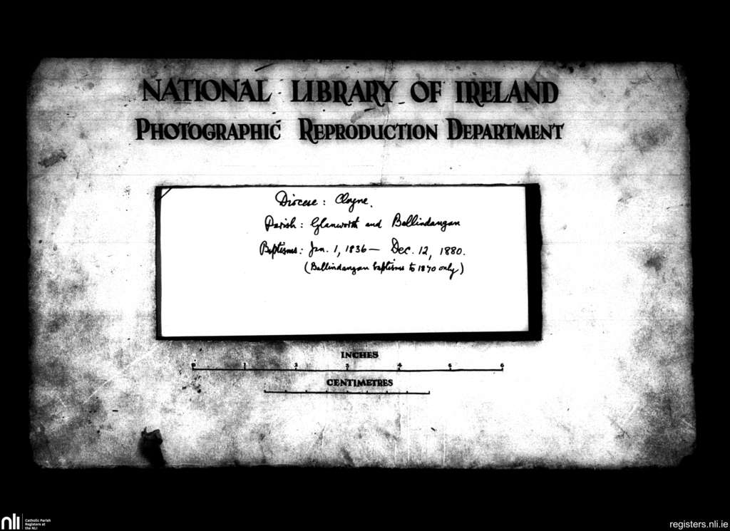 Glanworth and Ballindangan; County of Cork; Diocese of Cloyne. Baptisms