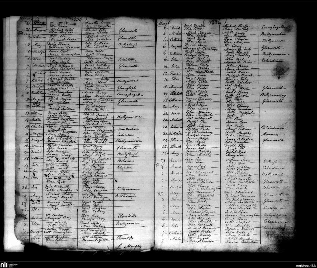 Glanworth and Ballindangan; County of Cork; Diocese of Cloyne. Baptisms, Jan. 1836 to Apr. 1836