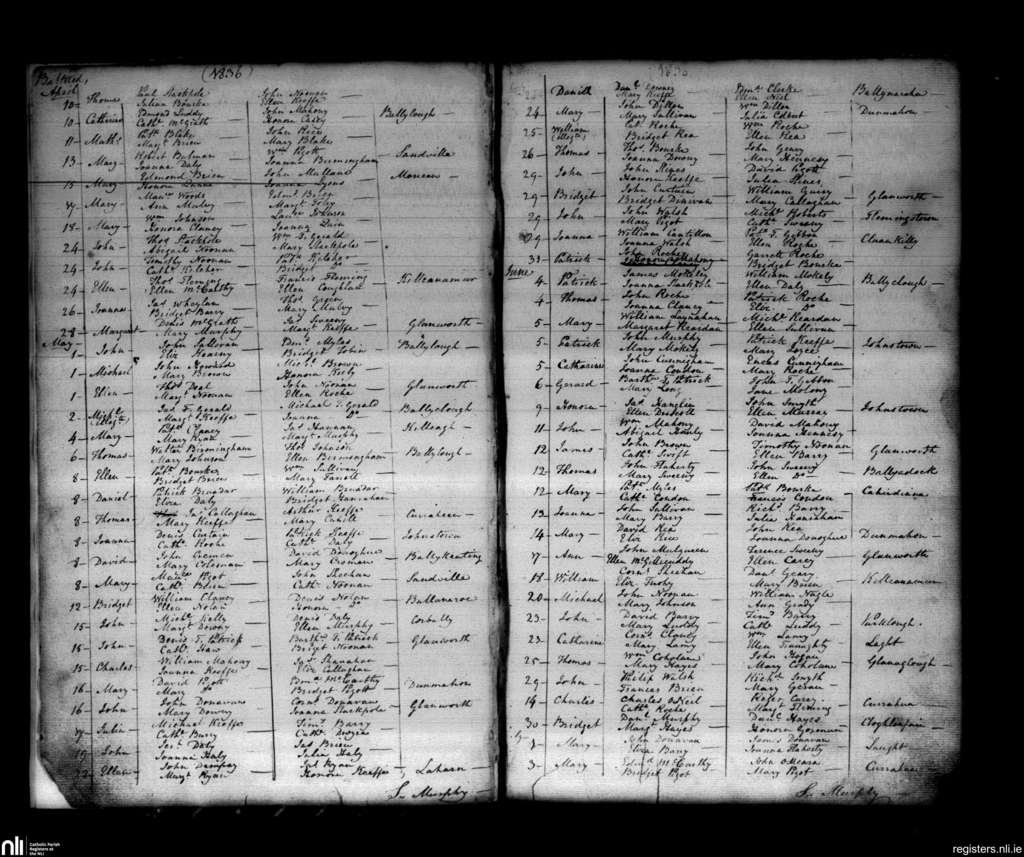 Glanworth and Ballindangan; County of Cork; Diocese of Cloyne. Baptisms, Apr. 1836 to July 1836
