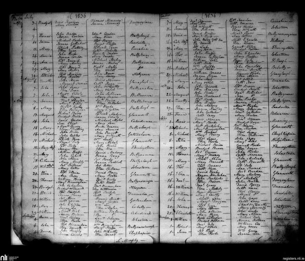 Glanworth and Ballindangan; County of Cork; Diocese of Cloyne. Baptisms, July 1836 to Nov. 1836