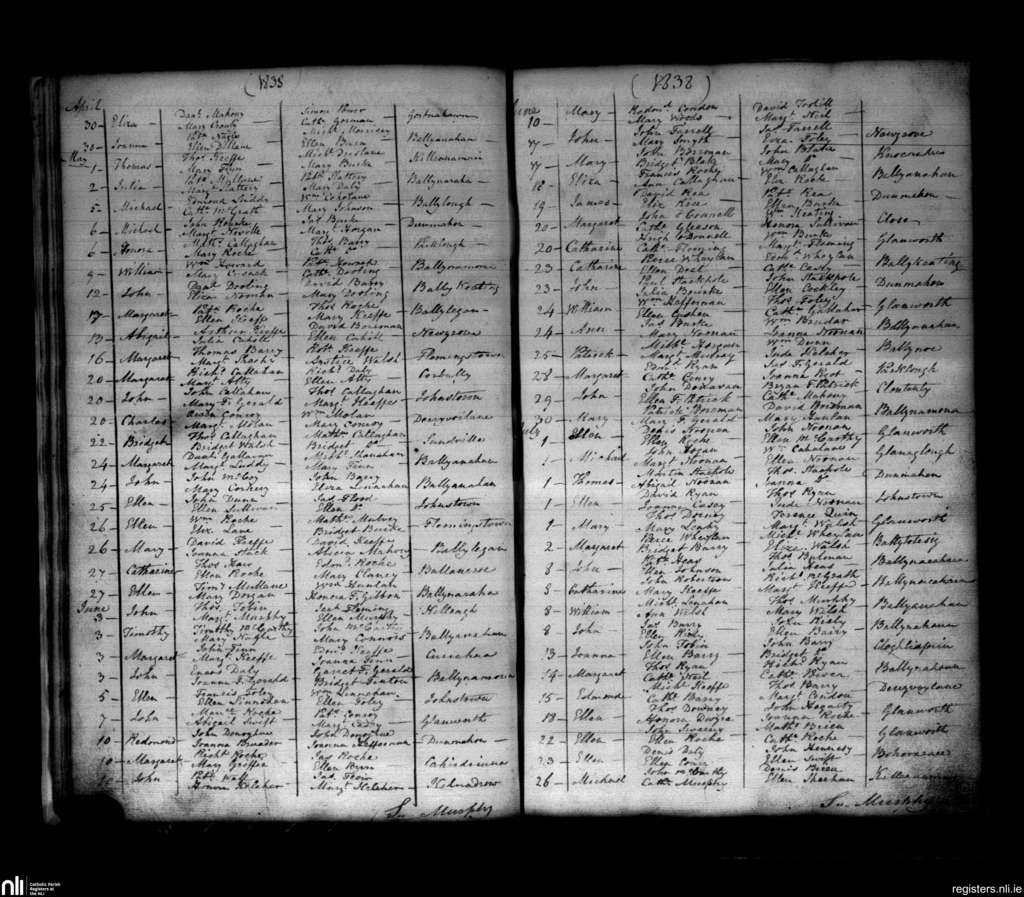 Glanworth and Ballindangan; County of Cork; Diocese of Cloyne. Baptisms, Apr. 1838 to July 1838