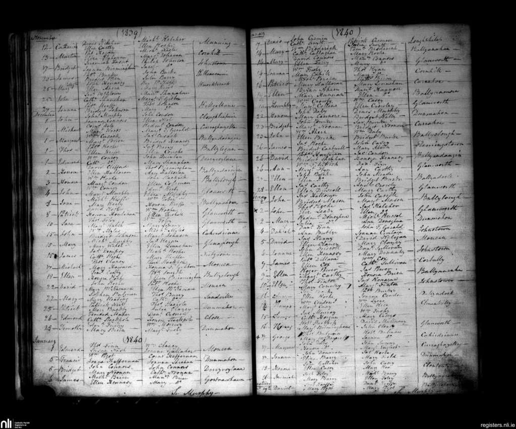Glanworth and Ballindangan; County of Cork; Diocese of Cloyne. Baptisms, Nov. 1839 to Mar. 1840