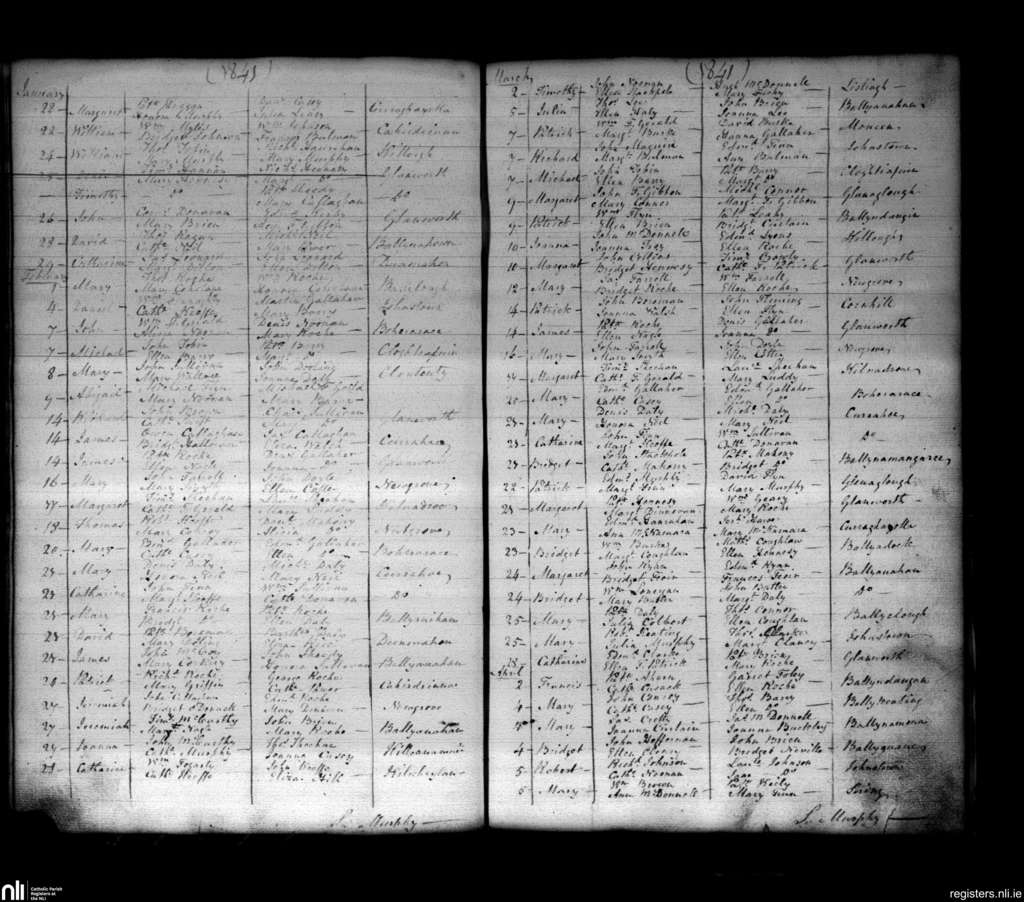Glanworth and Ballindangan; County of Cork; Diocese of Cloyne. Baptisms, Jan. 1841 to Apr. 1841