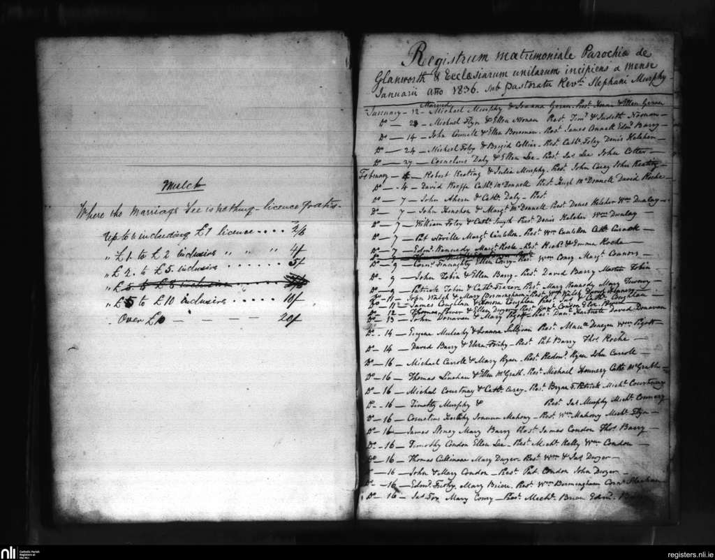Glanworth and Ballindangan; County of Cork; Diocese of Cloyne. Marriages, Jan. 1836 to Feb. 1836