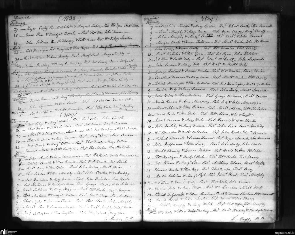 Glanworth and Ballindangan; County of Cork; Diocese of Cloyne. Marriages, Feb. 1838 to Mar. 1839