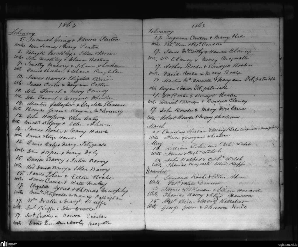 Glanworth and Ballindangan; County of Cork; Diocese of Cloyne. Marriages, Feb. 1863 to Nov. 1863