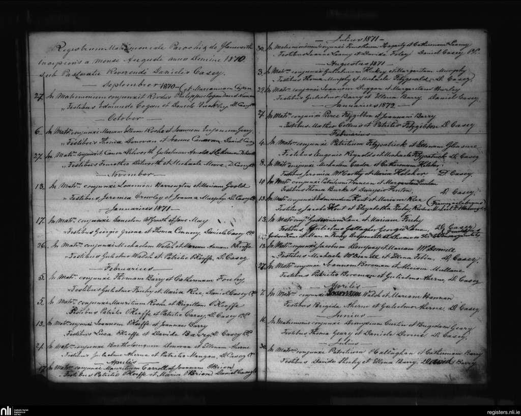 Glanworth and Ballindangan; County of Cork; Diocese of Cloyne. Marriages, Sep. 1870 to July 1872