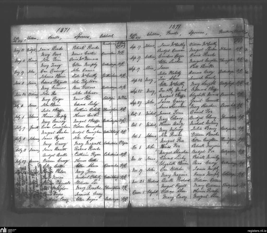 Glanworth and Ballindangan; County of Cork; Diocese of Cloyne. Baptisms, May 1871 to Dec. 1871