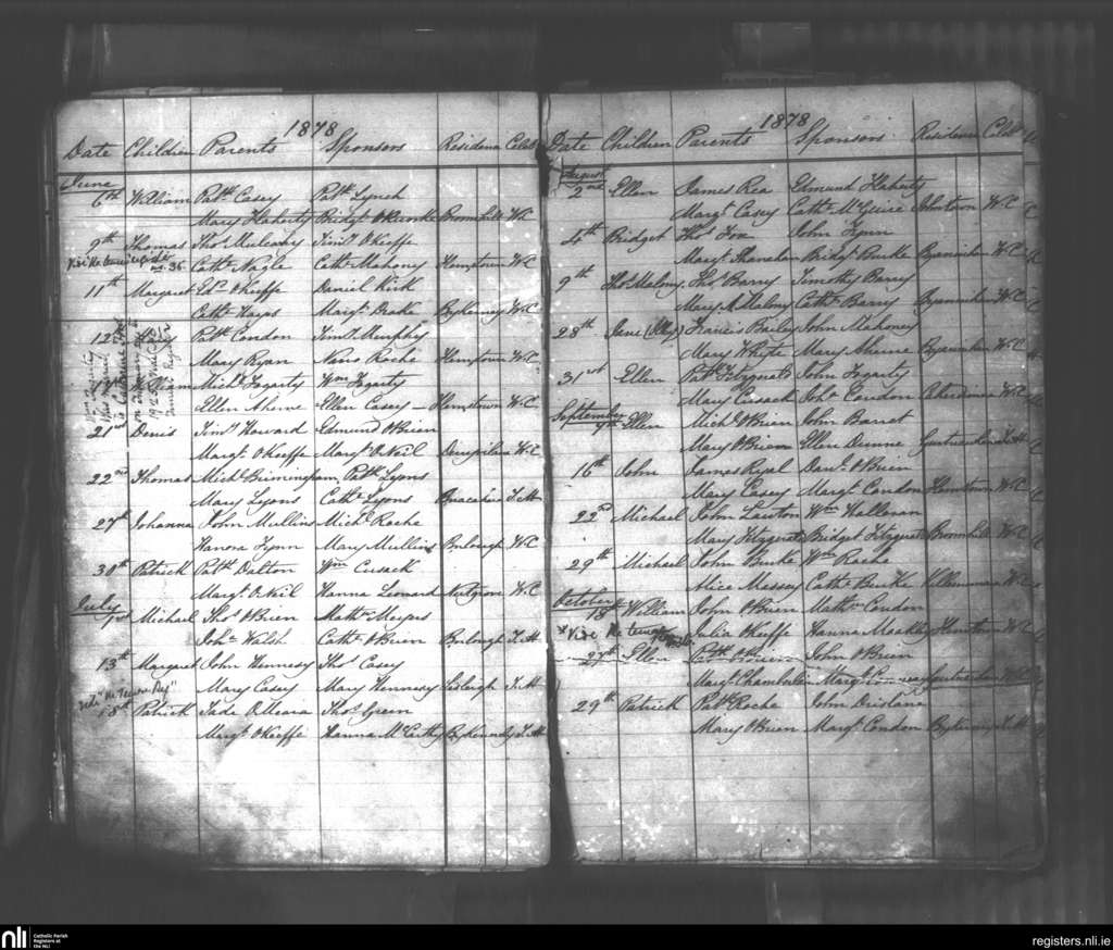 Glanworth and Ballindangan; County of Cork; Diocese of Cloyne. Baptisms, June 1878 to Oct. 1878