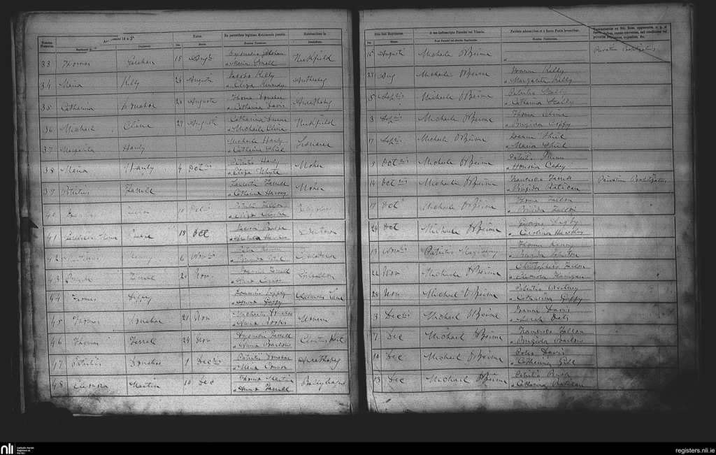 Clontuskert; County of Roscommon; Diocese of Elphin. Baptisms, Aug. 1865 to Dec. 1865