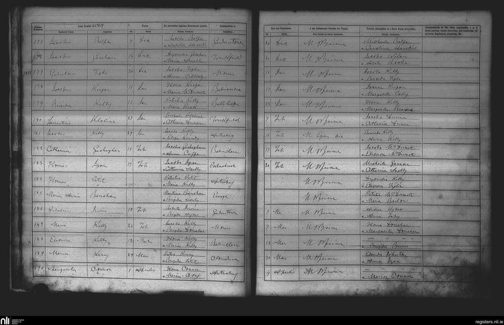 Clontuskert; County of Roscommon; Diocese of Elphin. Baptisms, Dec. 1868 to Apr. 1869