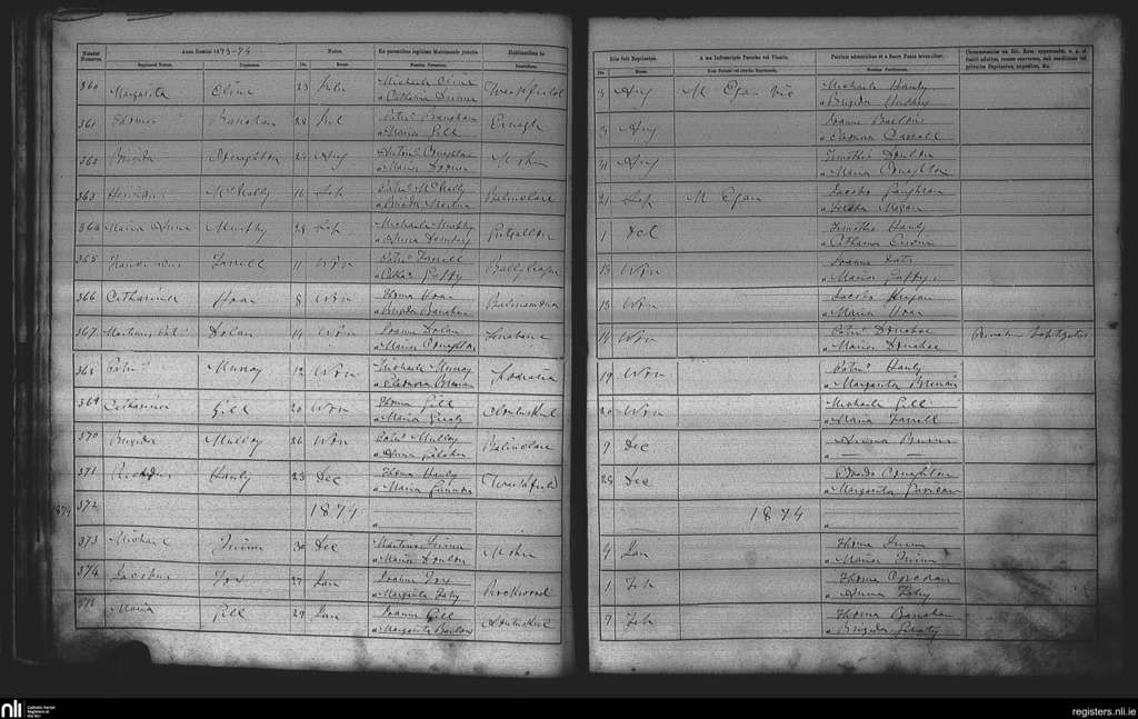 Clontuskert; County of Roscommon; Diocese of Elphin. Baptisms, Aug. 1873 to Feb. 1874