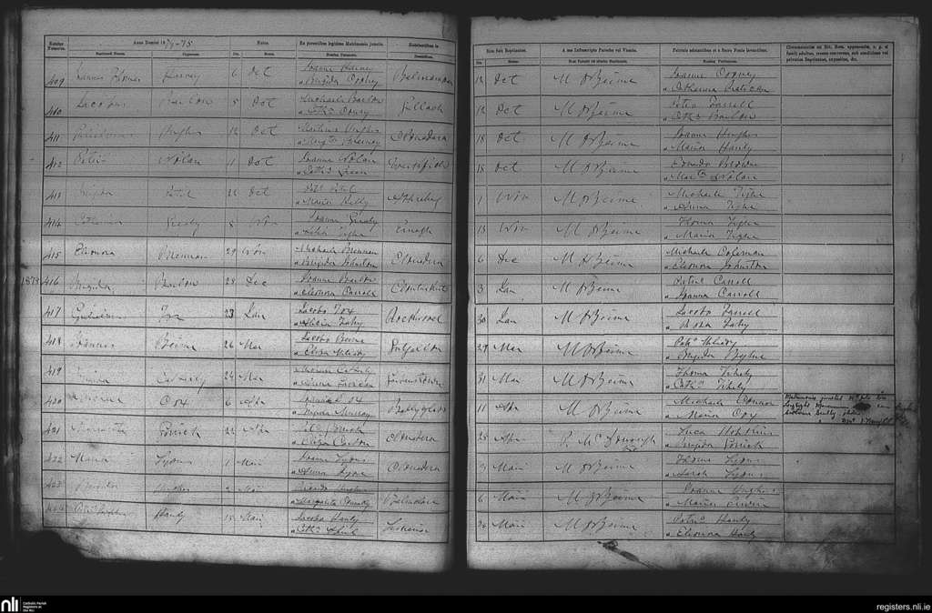 Clontuskert; County of Roscommon; Diocese of Elphin. Baptisms, Oct. 1874 to May 1875