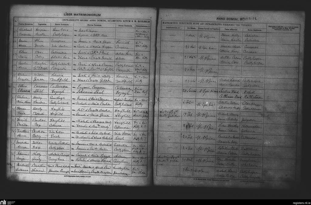 Clontuskert; County of Roscommon; Diocese of Elphin. Marriages, Mar. 1870 to Oct. 1871