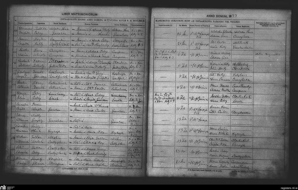 Clontuskert; County of Roscommon; Diocese of Elphin. Marriages, Jan. 1877 to June 1877