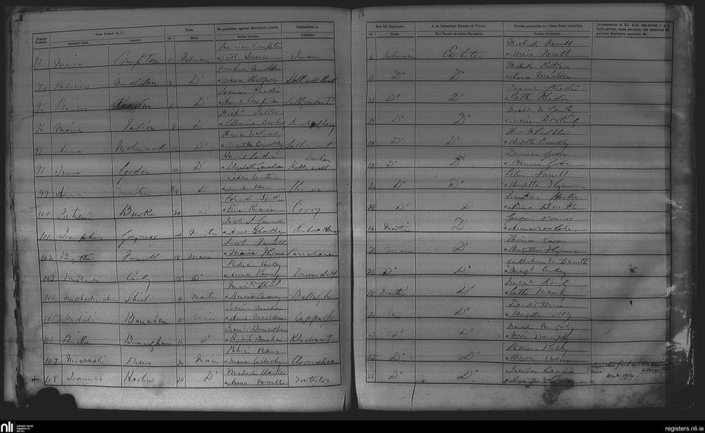 Clontuskert; County of Roscommon; Diocese of Elphin. Baptisms, Feb. 1876 to May 1876