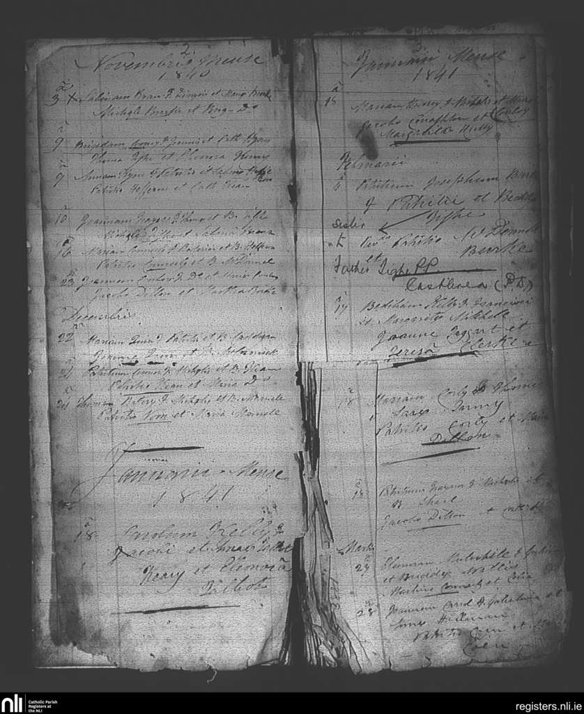 Ballintubber and Ballymoe; County of Roscommon; Diocese of Elphin. Baptisms, Nov. 1840 to Mar. 1841