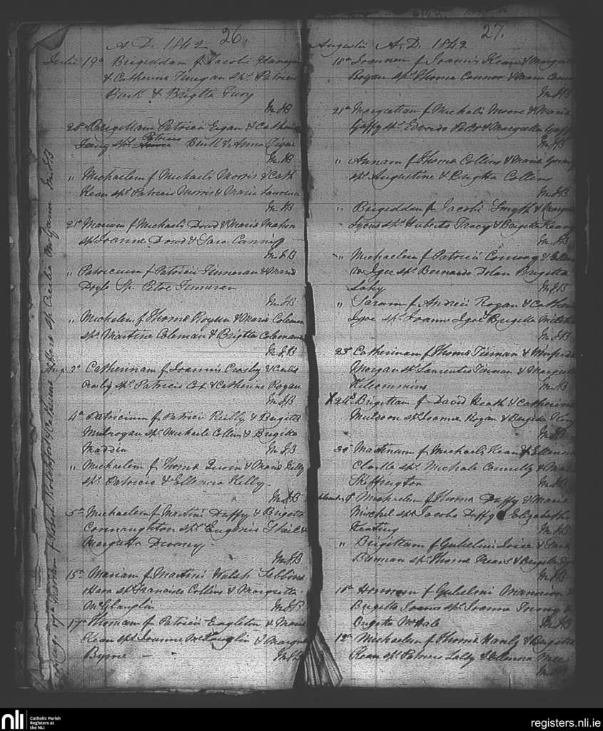 Ballintubber and Ballymoe; County of Roscommon; Diocese of Elphin. Baptisms, July 1842 to Sep. 1842