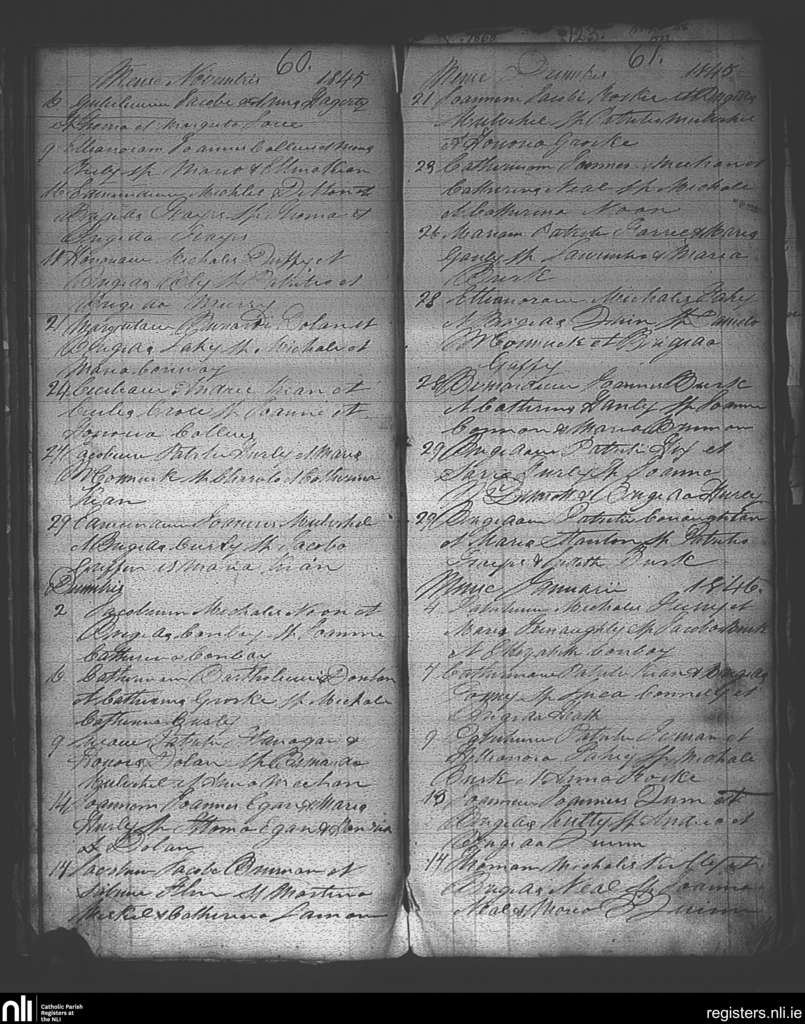 Ballintubber and Ballymoe; County of Roscommon; Diocese of Elphin. Baptisms, Nov. 1845 to Jan. 1846