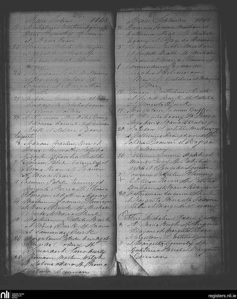 Ballintubber and Ballymoe; County of Roscommon; Diocese of Elphin. Baptisms, July 1846 to Oct. 1846