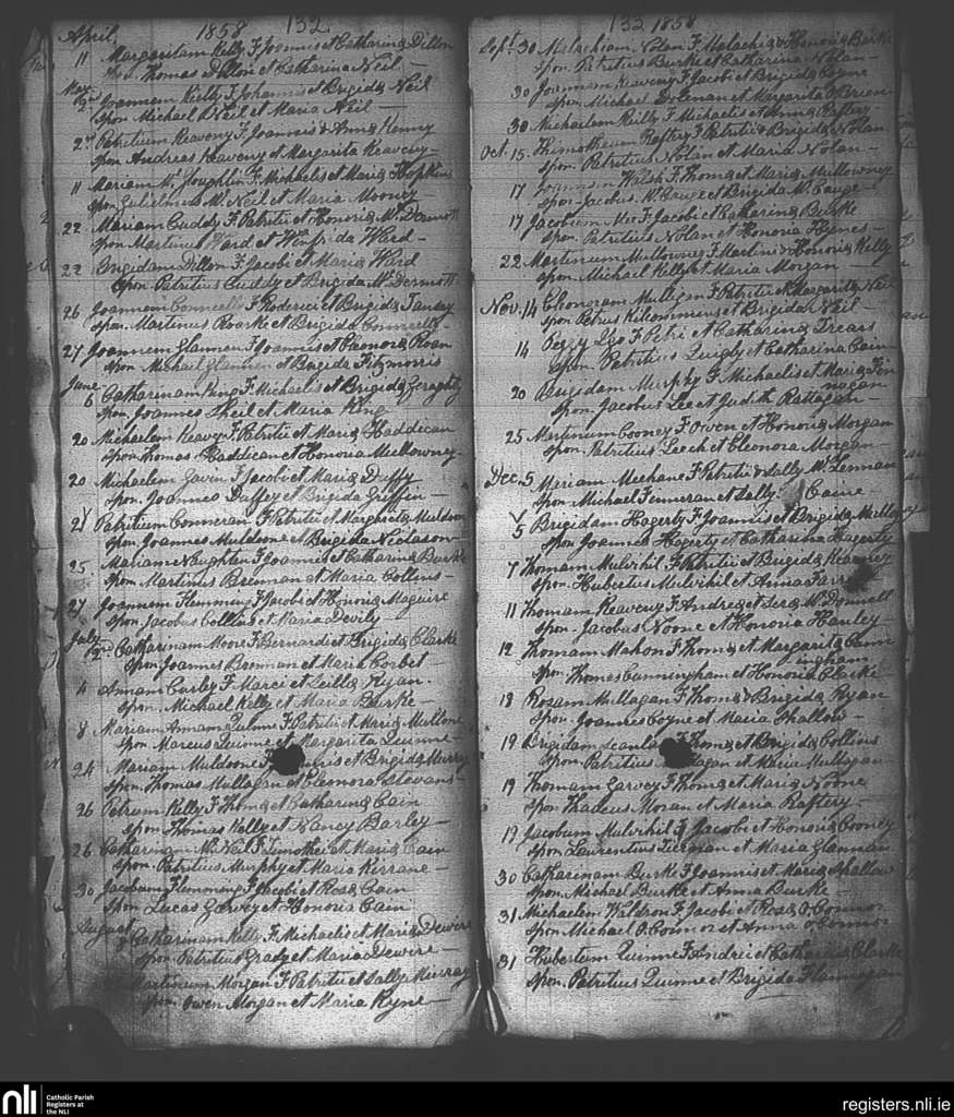 Ballintubber and Ballymoe; County of Roscommon; Diocese of Elphin. Baptisms, Apr. 1858 to Dec. 1858