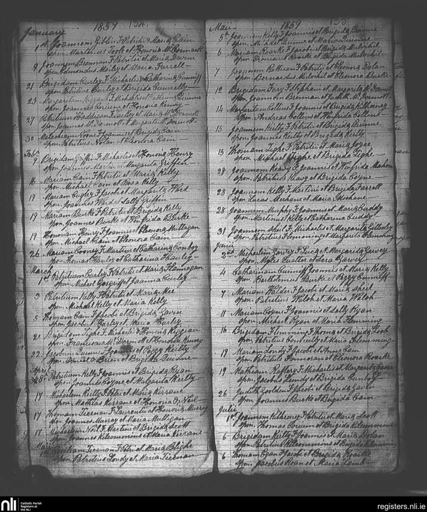Ballintubber and Ballymoe; County of Roscommon; Diocese of Elphin. Baptisms, Jan. 1859 to July 1859
