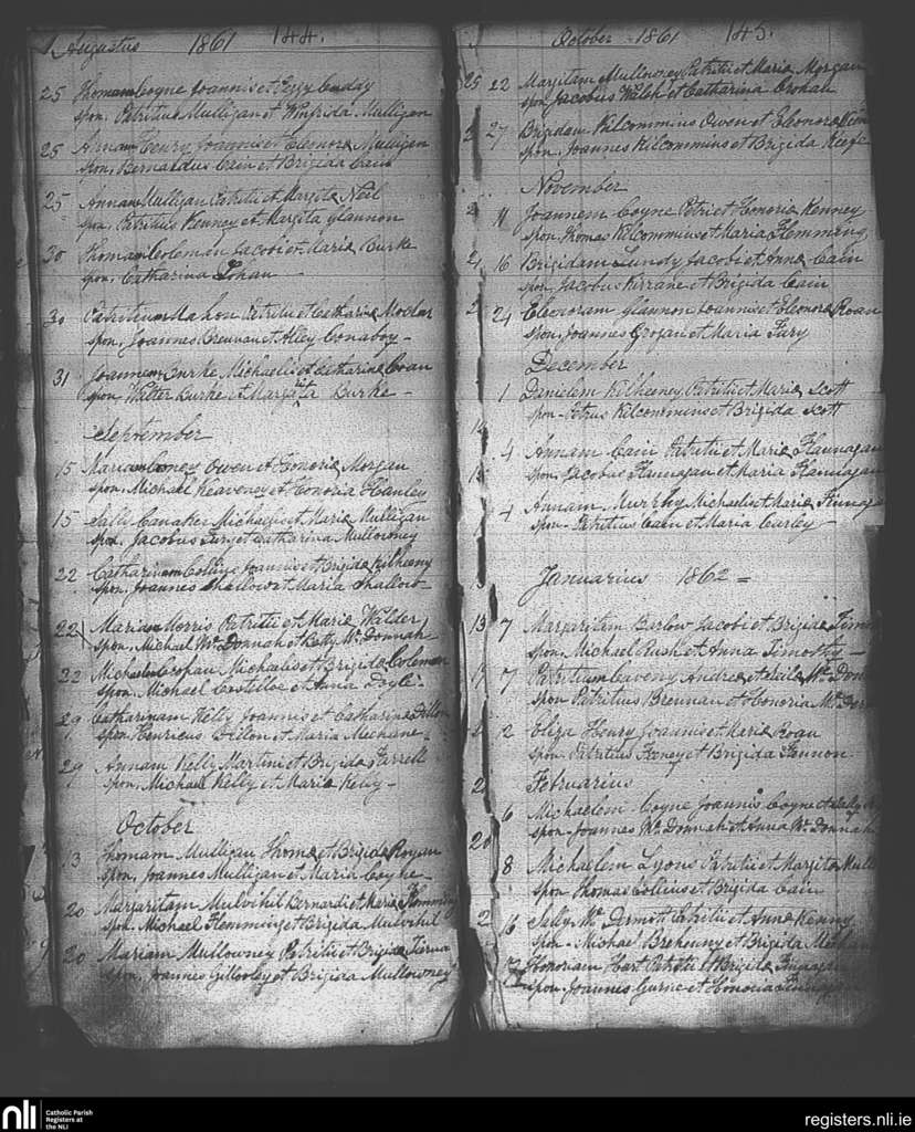 Ballintubber and Ballymoe; County of Roscommon; Diocese of Elphin. Baptisms, Aug. 1861 to Feb. 1862