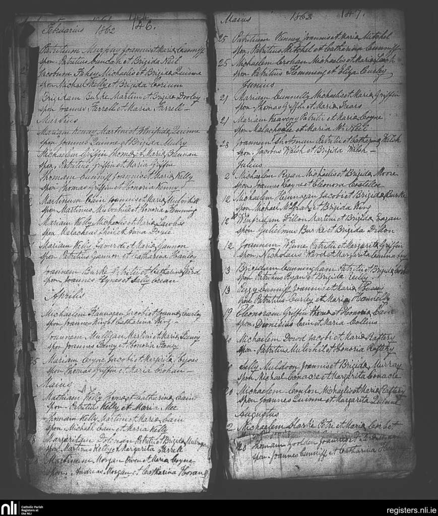 Ballintubber and Ballymoe; County of Roscommon; Diocese of Elphin. Baptisms, Feb. 1862 to Aug. 1862