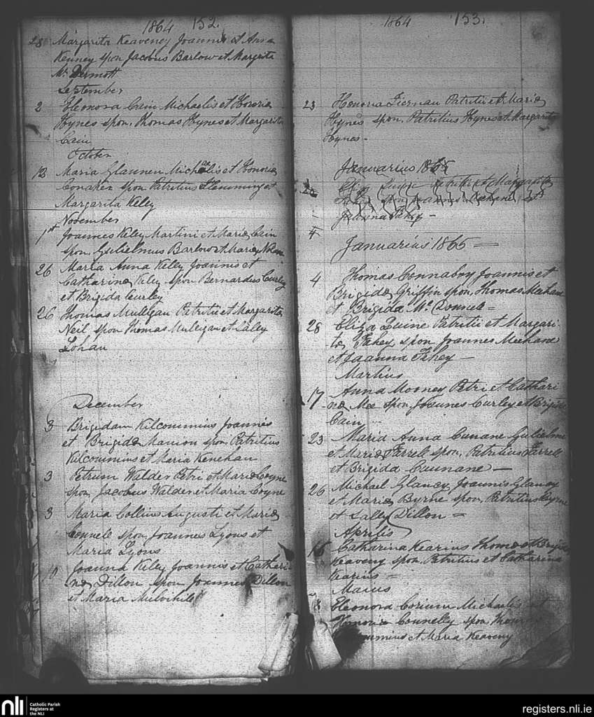 Ballintubber and Ballymoe; County of Roscommon; Diocese of Elphin. Baptisms, Aug. 1864 to May 1865