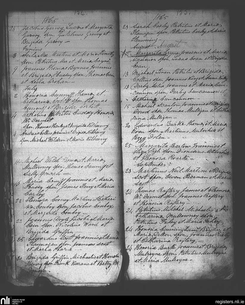 Ballintubber and Ballymoe; County of Roscommon; Diocese of Elphin. Baptisms, May 1865 to Sep. 1865