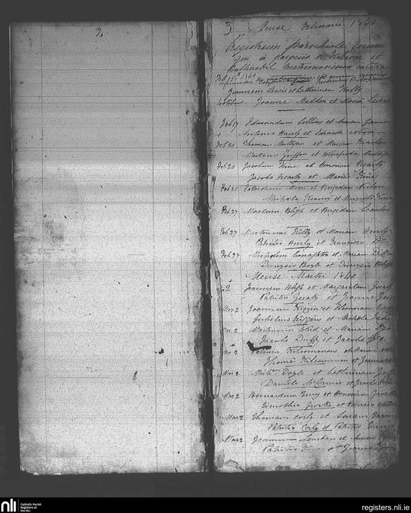 Ballintubber and Ballymoe; County of Roscommon; Diocese of Elphin. Marriages, Feb. 1840 to Mar. 1840