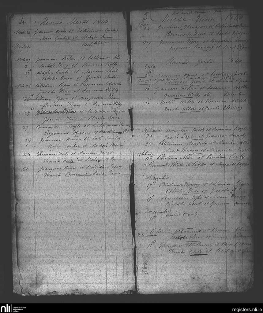 Ballintubber and Ballymoe; County of Roscommon; Diocese of Elphin. Marriages, Apr. 1840 to Dec. 1840